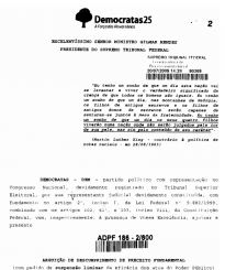 Inicial da ADPF 186 STF proposta por partido político Voltar 23 de março de 2022 by wilton   Documento Inicial da ADPF 186 STF.paginador Baixar Metadados Miniatura Compartilhe TítuloInicial da ADPF 186 STF proposta por partido políticoDescriçãoInicial da ADPF 186 STF proposta pelo partido político DemocratasAutoriaPartido político Democratas - DEMDenominação do objetoManifestação jurídicaTipologia de acervoMidiáticoMaterialVirtual/TextualTécnicaPeça jurídicaLocalizaçãohttps://jurisprudencia.stf.jus.br/pages/search/sjur281203/falseDimensão/Suporte7,56 MB/virtualMusealidadeQuestionamento a respeito da constitucionalidade da implantação do sistema de cotas raciais nas instituições federais de ensino superiorAno de produção2009Modo de aquisiçãoColetaEstado de conservação (?)BomReferênciashttps://jurisprudencia.stf.jus.br/pages/search/sjur281203/falseContexto HistóricoQuestionamento a respeito da constitucionalidade da implantação do sistema de cotas raciais nas instituições federais de ensino superior, no ano de 2009 com resultado favorável à implantação da referida ação afirmativa.Responsável pelo preenchimentoGabriel Dourado e Wilton Borges Continuar navegando DO SONHO À REALIDADE: Cotas raciais na Museologia da Universidade de Brasília (2009-2020) Pleno – STF julga constitucional política de cotas na UnB (2/4) Voltar para a lista de itens